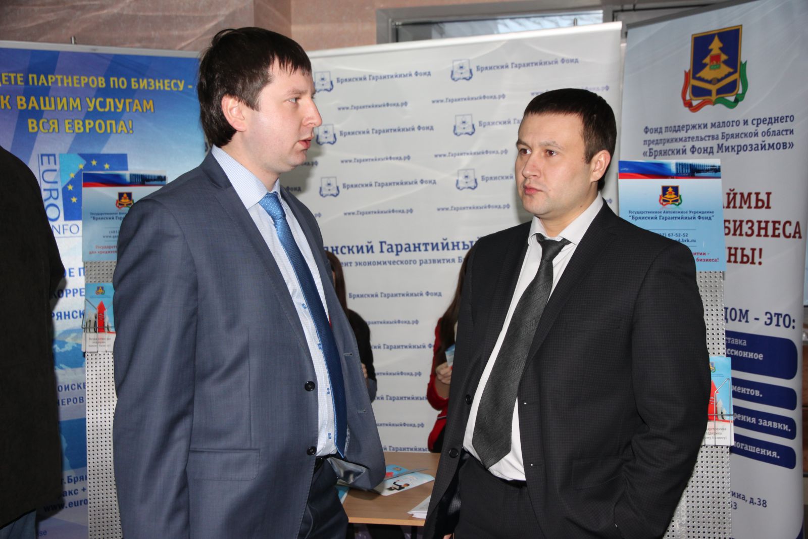 Регистрация участников конференции началась в 10.00. В фойе Дворца были представлены экспозиции ГАУ «Брянский Гарантийный Фонд», ФПП «Брянский Фонд Микрозаймов», Евро Инфо Корреспондентского Центра, 6 банков-партнеров Гарантийного Фонда, а также Пенсионного Фонда РФ. После регистрации участники мероприятия смогли подойти и ознакомиться с экспозициями и получить подробную консультацию у специалистов по представленным программам.